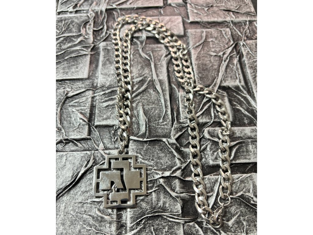 Přívěšek Rammstein - Stylový přívěšek z nerezové oceli s ikonickým logem Rammstein, doplněný odolným řetězem z nerezové oceli. Perfektní doplněk pro každého fanouška této legendární kapely! 🤘